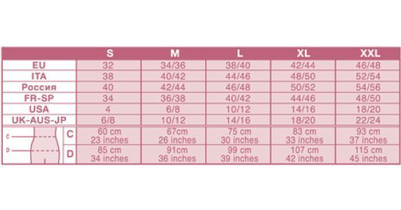 Подбор размера: необходимо измерить окружность талии и бедер и воспользоваться таблицей размеров.