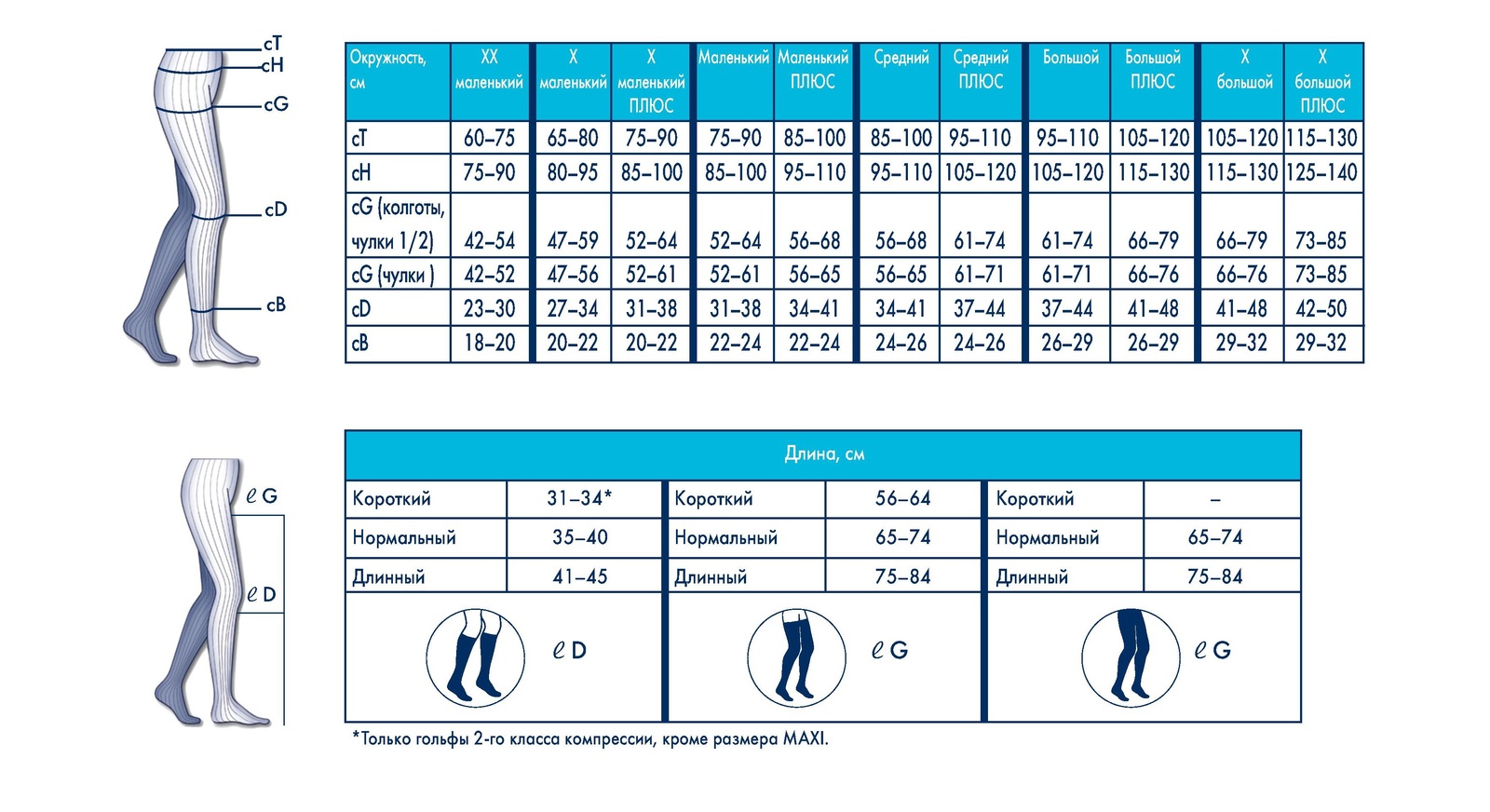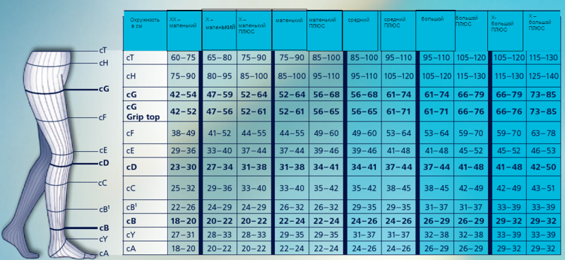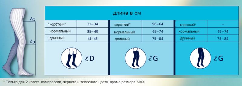 Класс компрессии: 1-й (18-21 mm Hg) 2-й (23-32 mm Hg) 3-й (34-46 mm Hg)