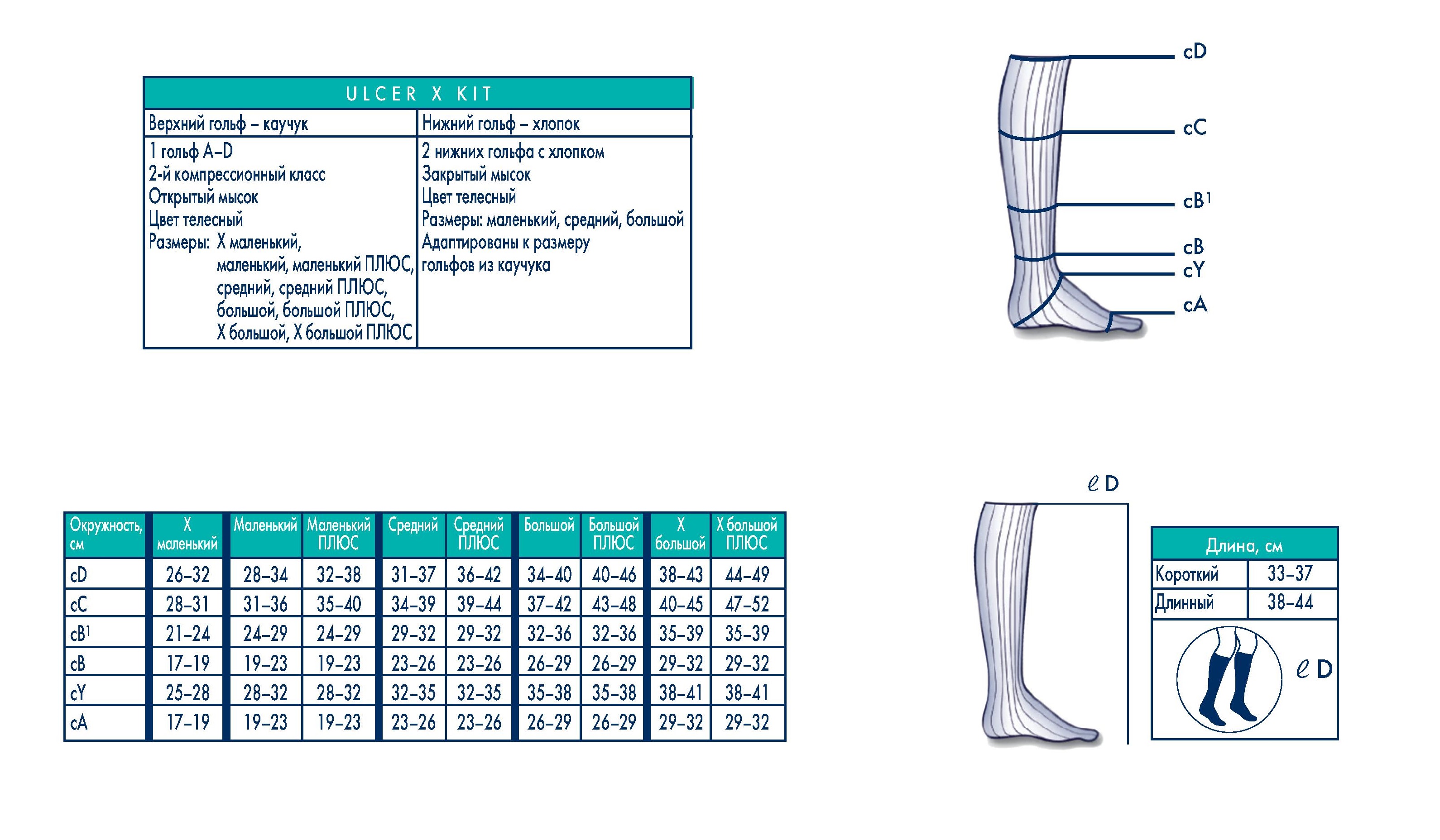Благодаря гладкой наружной поверхности нижнего гольфа, верхний гольф из каучука 2 компрессии легко скользит по нижнему гольфу и не создает трудностей при самостоятельном надевании. Суммарное давление нижнего и верхнего гольфа достигает 34-46 мм рт.ст., что является необходимой нормой для компрессионного лечения трофической язвы.