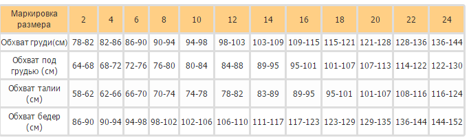 Таблица размеров