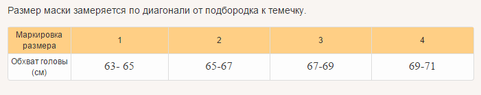 Таблица размеров: