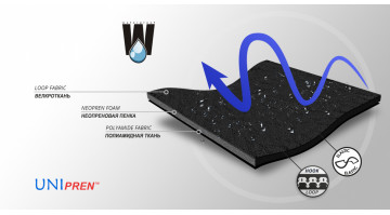 UniPren™ это универсальный трехслойный материал, состоящий из наружного эластичного полиамидного трикотажа с функцией самоприлипания, внутреннего слоя из неопреновой пенки и подкладки изнутри из эластичного трикотажа джерси. Этот материал характеризуется мягкостью и очень высокой эластичностью. Очень важным преимуществом этого материала является то, что он не вязаный, не имеет толстых нитей, поэтому его переплетения не оставляют отпечатка на коже пациента и не вызывают ран в местах сильного сжатия. Функция самоприлипания материала определенно облегчает использование изделия. UniPren™ является водоотпорным материалом.