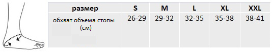 Для правильного выбора подходящего размера голеностопного бандажа Orlett BAN-101 (M) необходимо сантиметровой лентой (плотно, но не утягивая) измерить обхват объема стопы. Далее воспользоваться размерной таблицей, представленной ниже: