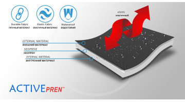 ActivePren™ это трехслойный материал состоящий из внешней эластичной ткани и внутреннего слоя из неопреновой пенки. Материал характеризуется мягкостью и высокой эластичностью. Благодаря системе AirSupply, часть тела под ортезом вентилируется, поддерживается соответствующее разогревание. Это не тканный материал, он не имеет грубых волокон, не натирает кожу. Ортезы из ткани ActivPren™ самые прочные и эффективные на рынке. Материал водостойкий.