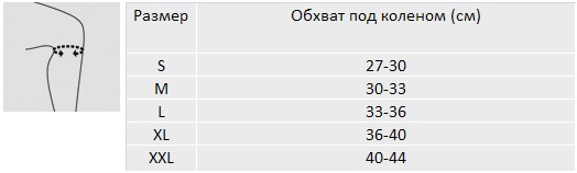 Для правильного выбора подходящего размера коленного ортеза Orlett RKN-203 необходимо сантиметровой лентой измерить обхват колена (нога согнута в колене на 90 градусов) и воспользоваться таблицей: