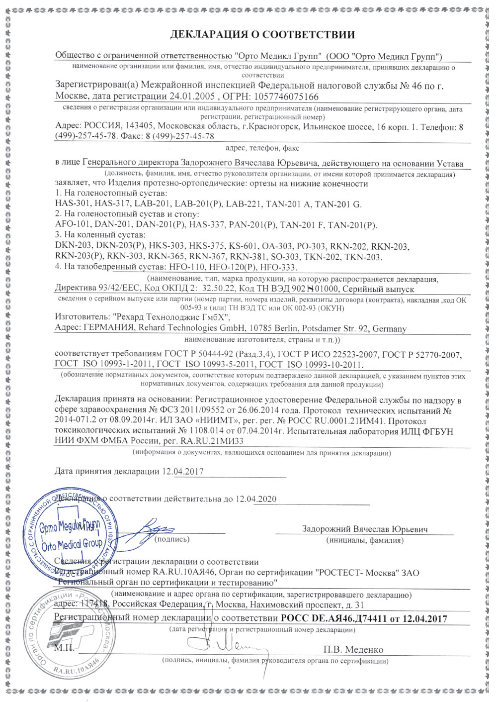 Сертификаты на Orlett RKN–203