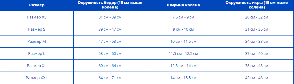 Размер определяется поперечником коленого сустава (в самом широком его месте)