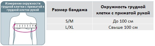 Для правильного выбора подходящего размера плечевого бандажа Orlett SI-301 необходимо сантиметровой лентой измерить окружность грудной клетки вместе с прижатой к груди рукой. Далее воспользоваться размерной таблицей, представленной ниже: