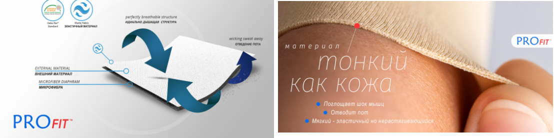 Бандаж ОТ-14 выполнен из материала ProFit. Материал создает правильный уровень компрессии, уменьшает тремор мышц при нагрузках, так же способен поддерживать оптимальный для кожи климат и отведение пота. На ощупь изделие мягкое и бархатистое.